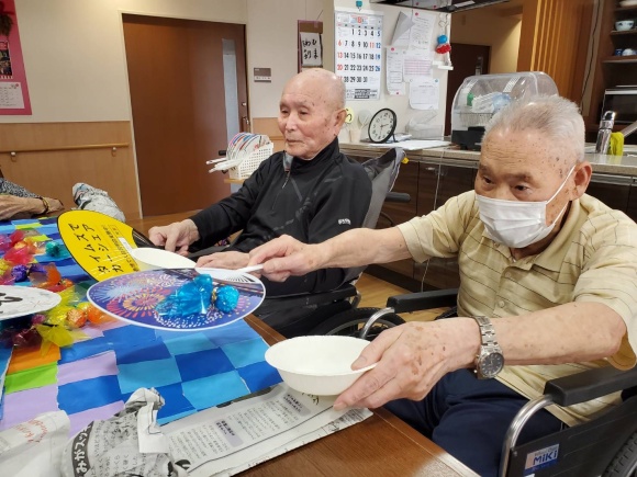 このフロアーでは、うちわの代わりに小さな型紙ですくわれました(*^-^*)