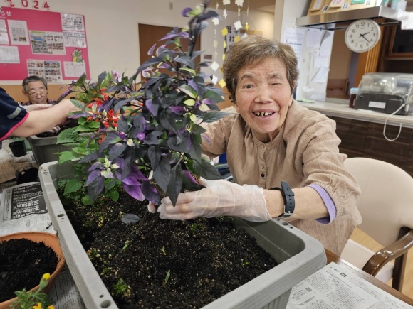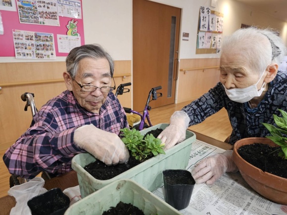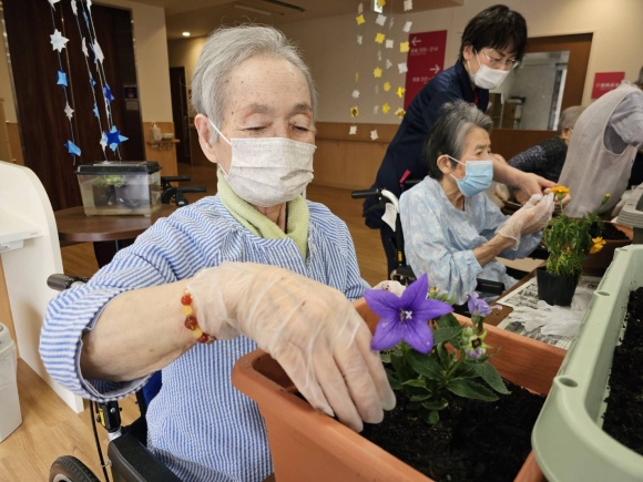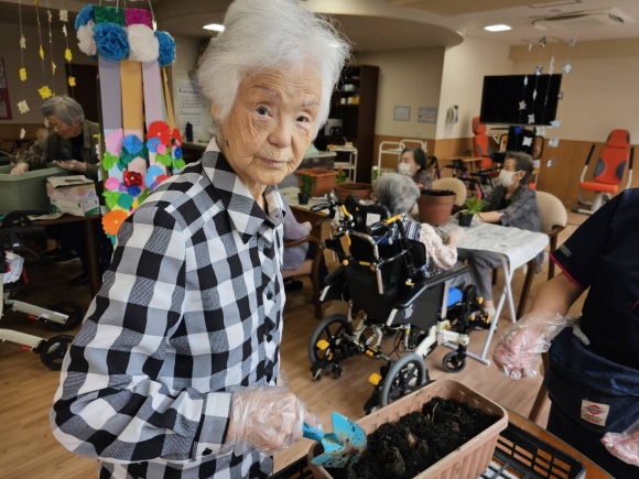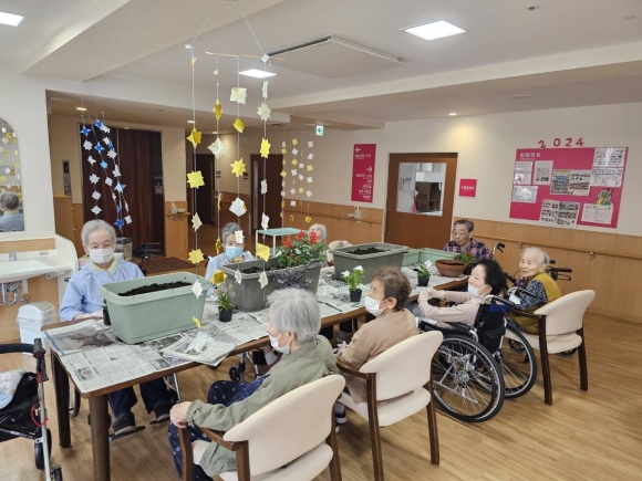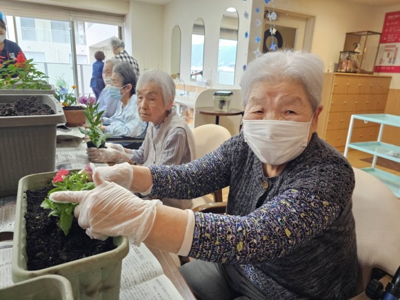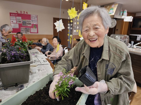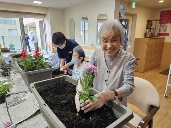 今日は急遽以前から行いたかった、花植えを入居者の皆様と行いました。