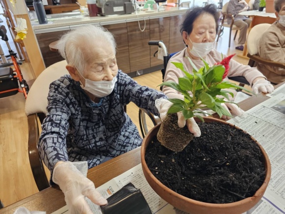 職員、入居者の方と声を掛けあって、少しでも長くきれいな花が見れるよう