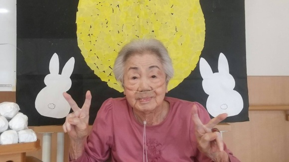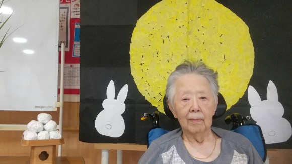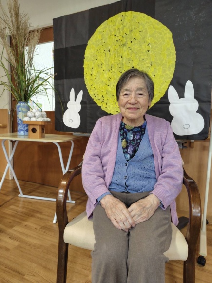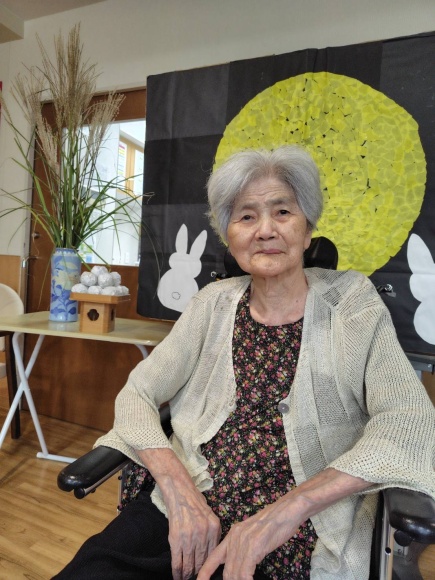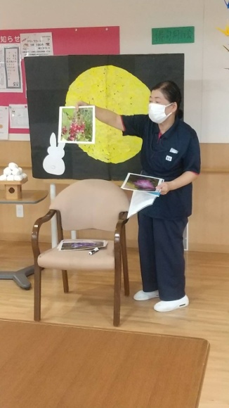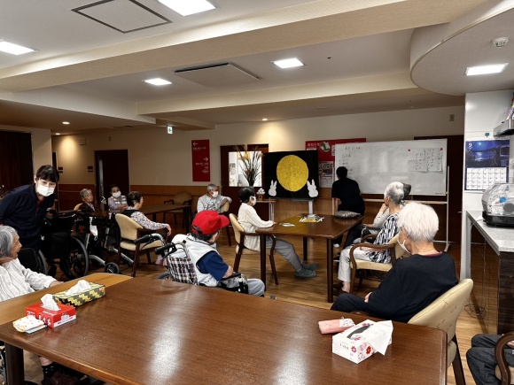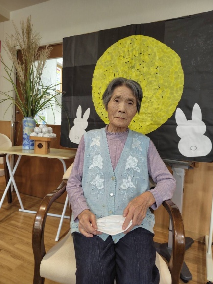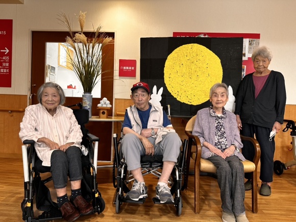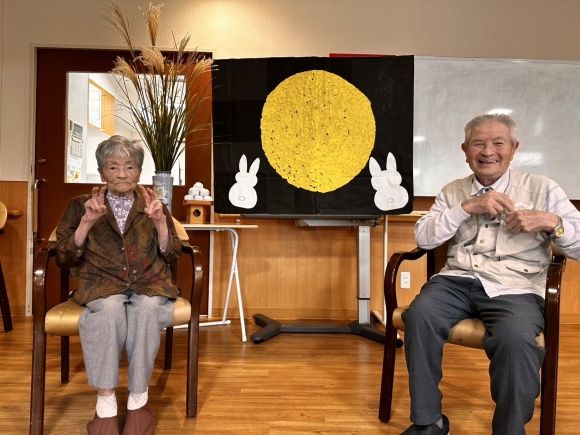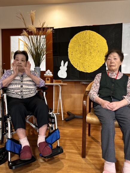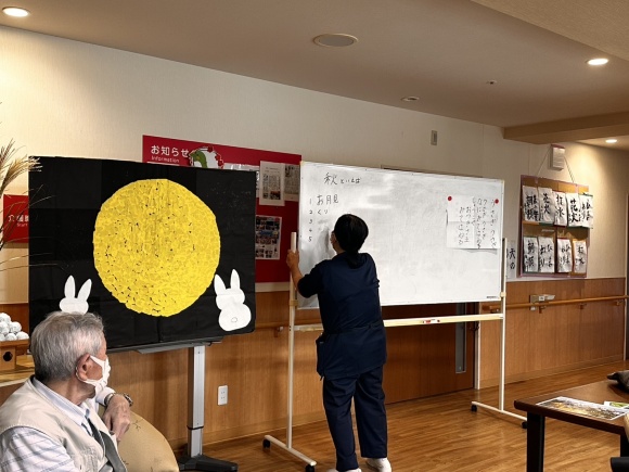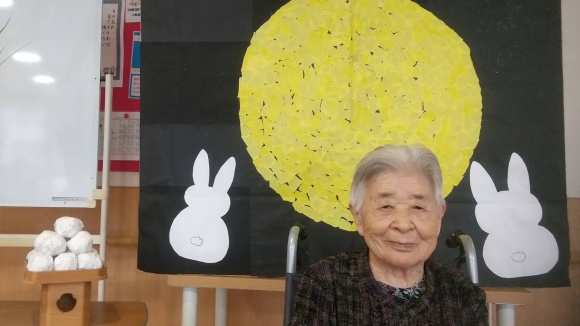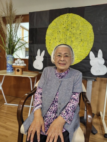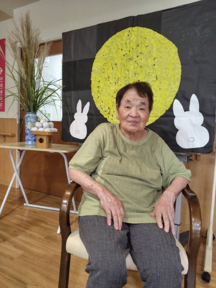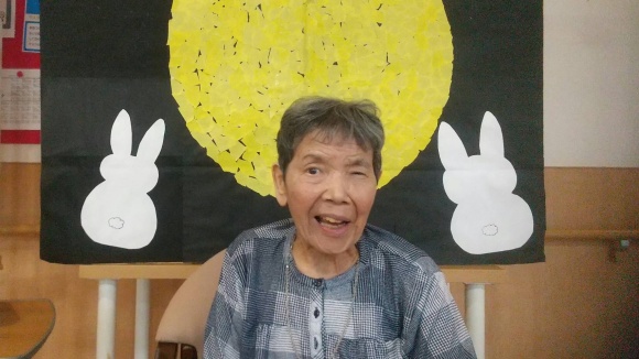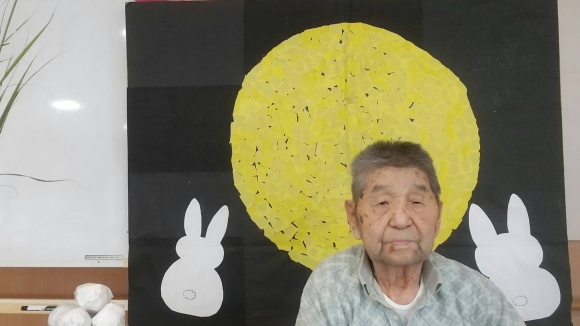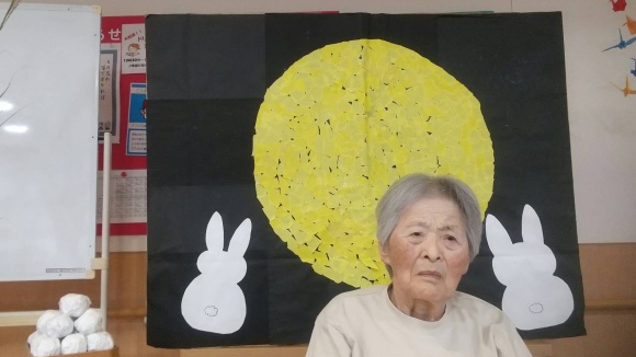 レクリエーションで作った、大きなお月様の貼り絵も見事です。