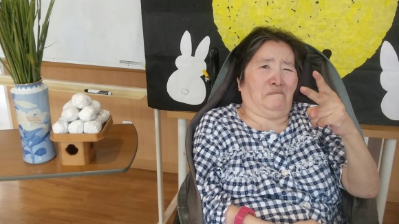 おやつには、おいしいお月見団子を楽しんでいただきました(^^♪