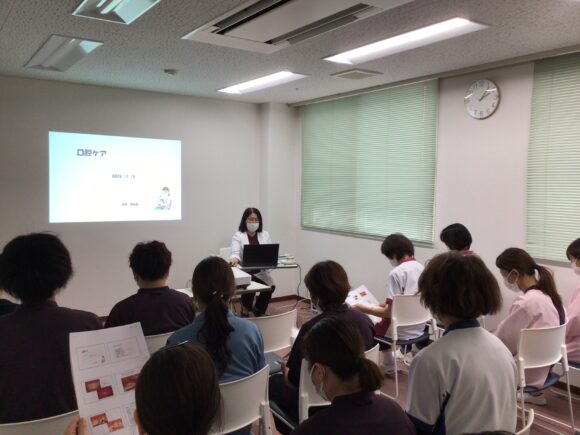 ビハーラ花の里病院 歯科医師 古胡先生をお招きして、「口腔ケアのポイントと実践」の講習会を開催しました。