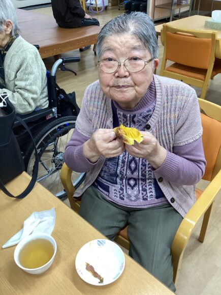 おやつに、焼き立てほかほかの石焼き芋を提供させていただきました。