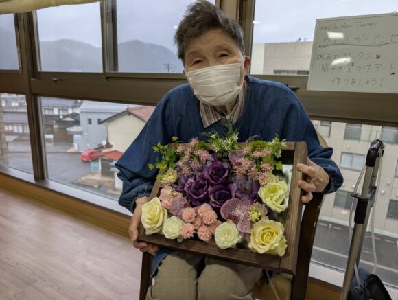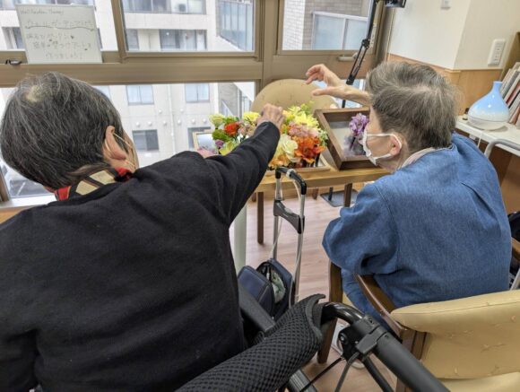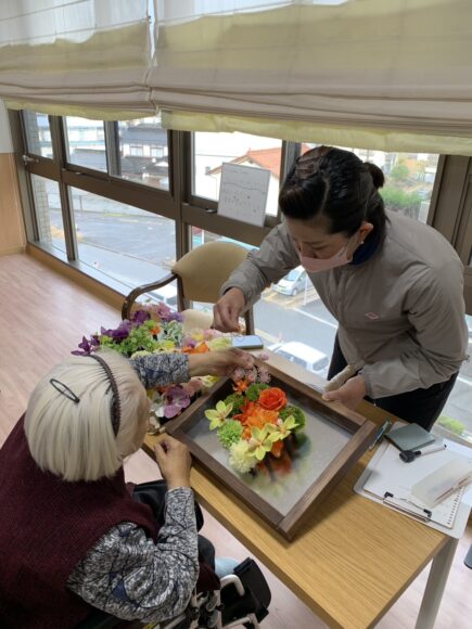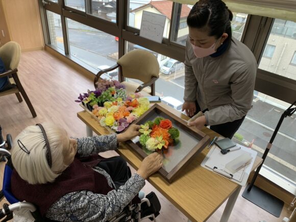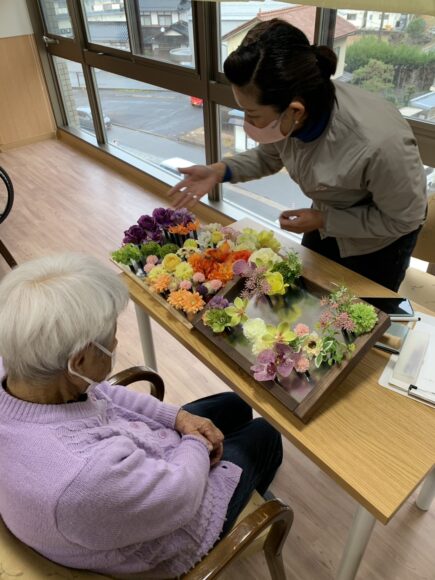 「春がきたみたいだね。」と、会話も弾み、花が配置されていくごとに笑顔も増えていきました。