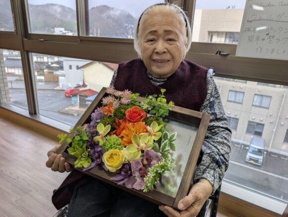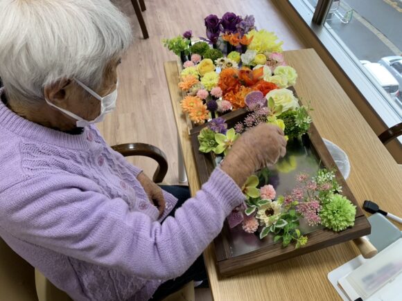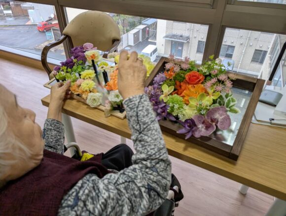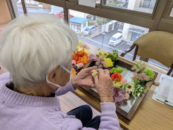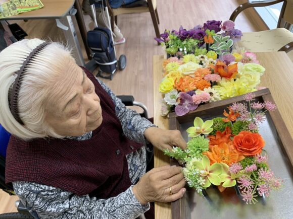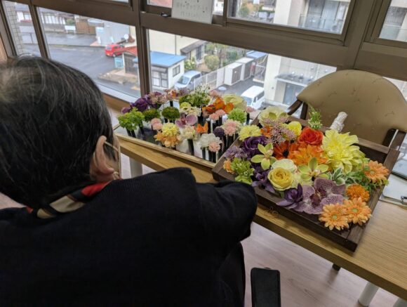 園芸療法士の西野先生と一緒に、アーティフィシャルフラワーを使った