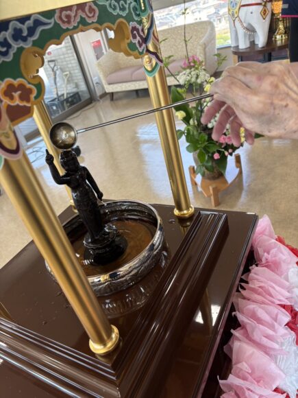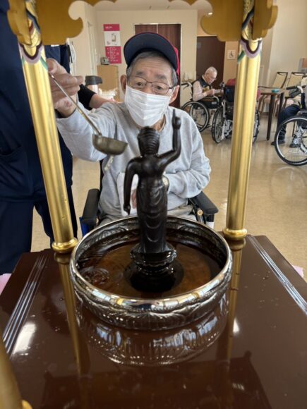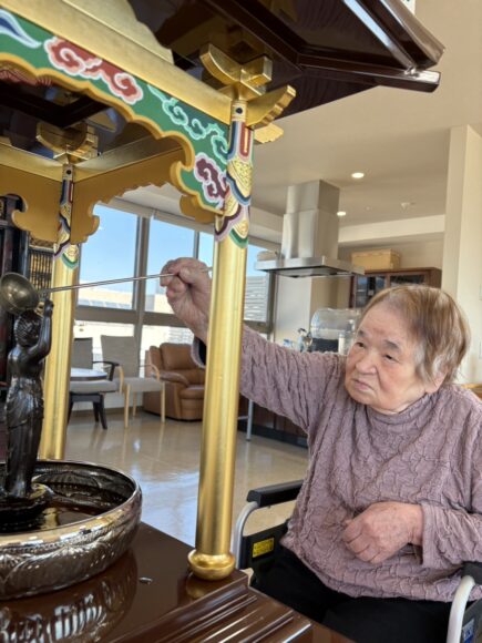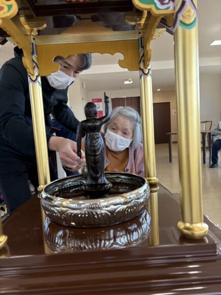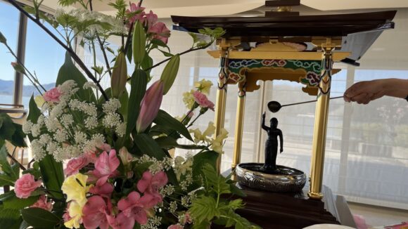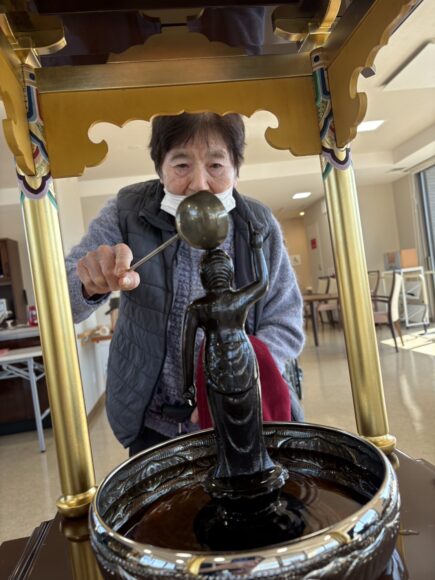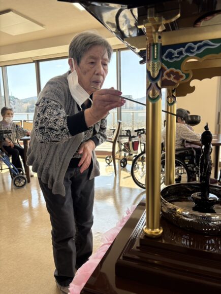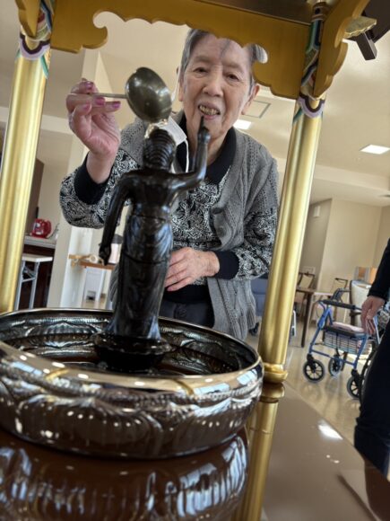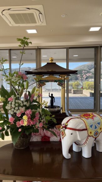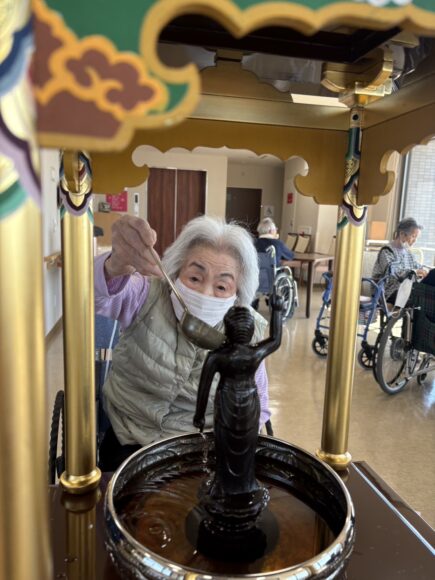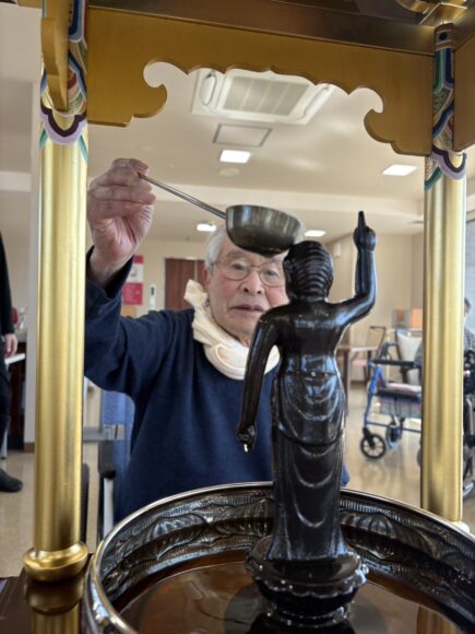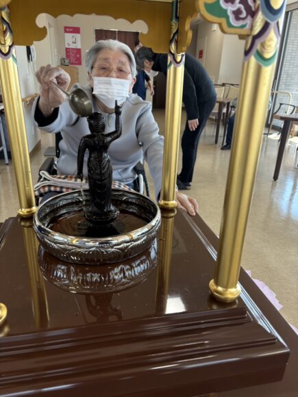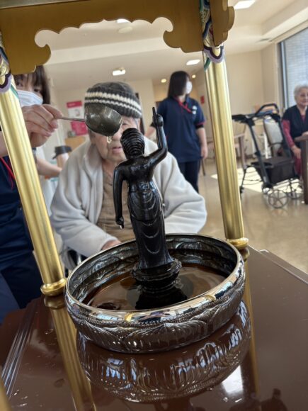 「第二迦葉」 花まつり【第二迦葉】 2026.04.09 4月8日は、お釈迦様のお誕生日です。 この日に合わせて、花まつりを行いました。 花御堂のお釈迦様に甘茶をそっとかけながら、 皆様でお祝いしました。 甘茶のやさしい甘さに、ほっとした表情も見られ、 「ほんのり甘くて飲みやすいね。」 「初めて飲んだけどおいしいね。」といった声も聞くことができました。 春のやさしい空気に包まれながら、心和むひとときとなりました。 Tweet Share Hatena Pocket RSS feedly Pin it ふれあいコンサート【第二迦葉】 前の記事