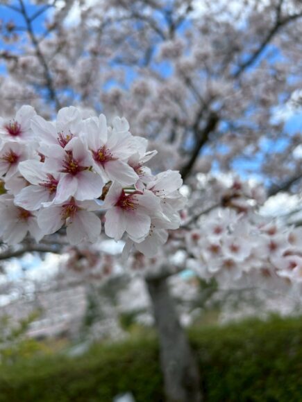 画像を撮影した日は汗ばむくらいのあたたかさで、病棟や各施設からもお花見に患者様、利用者さまがたくさんお散歩に出られていました。