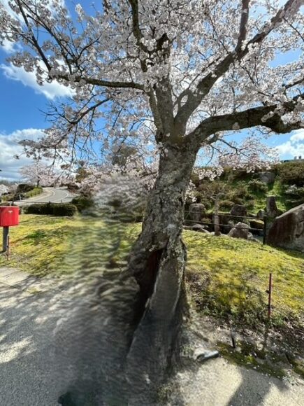 慈照会が設立した時に植樹された桜の木がたくさん咲き誇っています。画像は4月4日のもの。毎年のようにうつくしく山家の春を彩ってくれています。