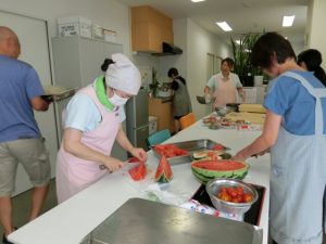 「迦葉」 普賢ビル☆夏まつり 2017.08.25 毎年恒例の夏まつりが開催されました☆ 職員は午前中からの準備で大忙し! 夏といえば!のスイカです♪ 5升分 (!!) のおにぎりも握って、準備はバッチリ (ˆˆ) 職員も浴衣で祭りを盛り上げました♥ 炭火焼きの焼き物も絶品!! お楽しみ抽選会でみごと当選!うれし~♥ 最後は職員全員による “ 花の里音頭 ” の披露☆ 今年も、みなさまに迦葉の夏を楽しんでいただきました ♪(ˆ–ˆ)ρ♪ Tweet Share Hatena Pocket RSS feedly Pin it 盆法要 前の記事 クリニック診療について(9月) 次の記事