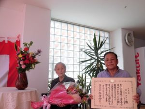 表彰を受けた感想をきくと、「緊張しました・・。」と