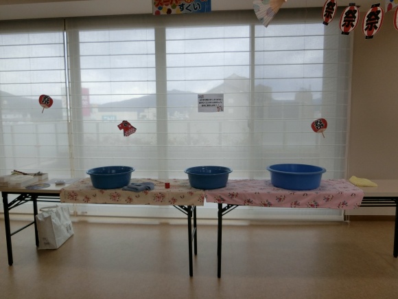 スーパーボールすくいや、射的、宝引きの準備も整い、