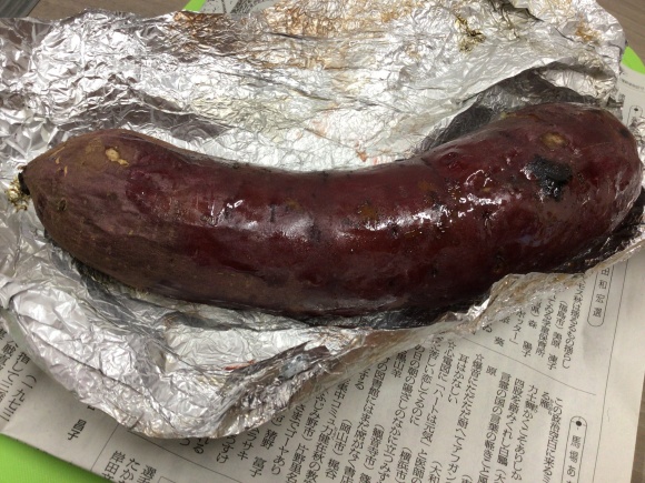 職員の家の畑で採れた「安納芋」と、お取り寄せした「紅はるか」で、焼き芋をしました。