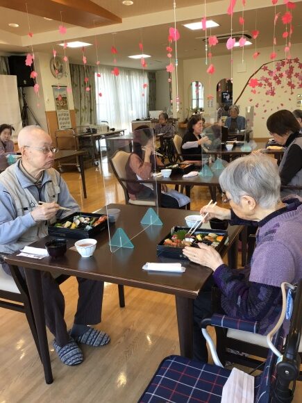「迦葉」 お花見ランチ【迦葉】 2022.04.22 2023.02.14 迦葉のみなさまに、室内でもお花見気分を味わっていただこう!ということで『お花見ランチ会』を開きました♪ 食堂を桜でいっぱいにして、みなさんをお出迎え🌸 ご用意したお弁当は、“ 三喜八 ” さんのお花見弁当🍱✨ ↑↑大葉のところにはお刺身がありましたが、撮影前に職員が美味しくいただいてしまいました(>_<) ごめんなさい!!! 春を感じながらの豪華弁当は格別の美味しさ!! 職員も入居者のみなさまも、大満足のランチとなりました(*^-^*) 三喜八さん、ごちそうさまでした♡ Tweet Share Hatena Pocket RSS feedly Pin it 満開を迎えた敷地内の桜 前の記事 ひな祭り【第二迦葉】 次の記事