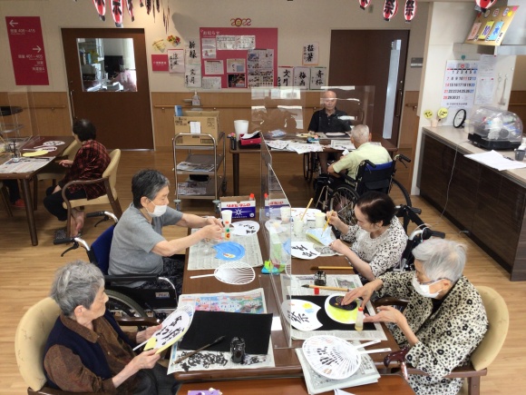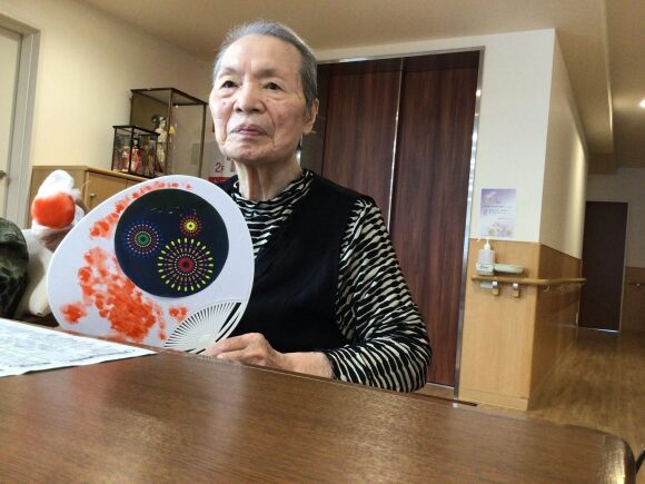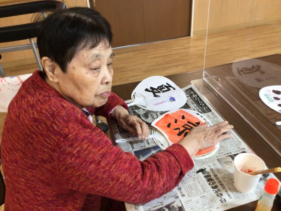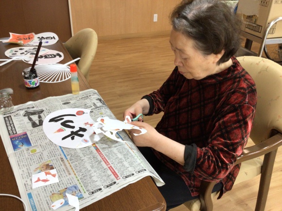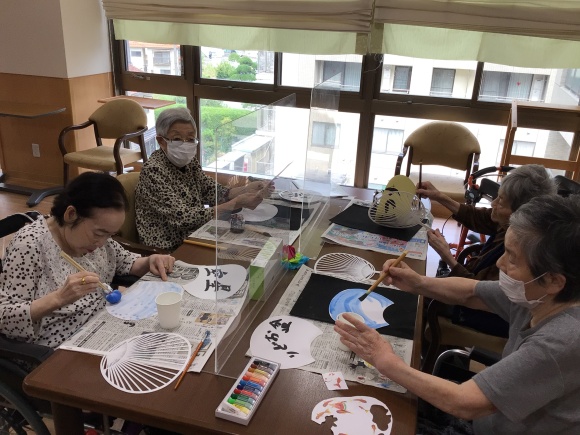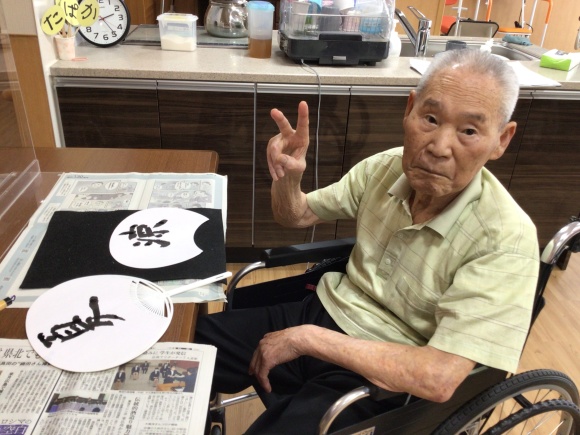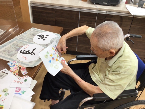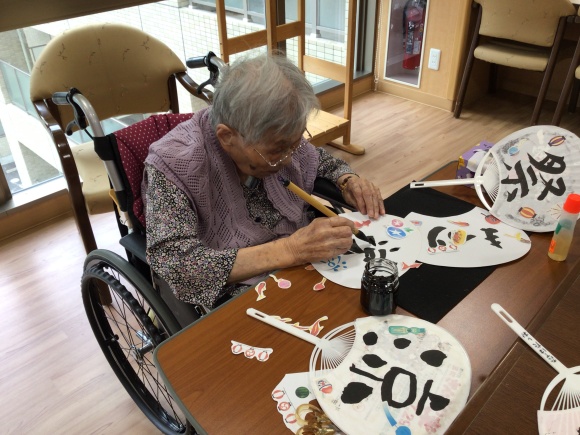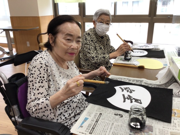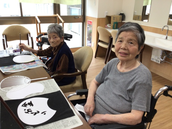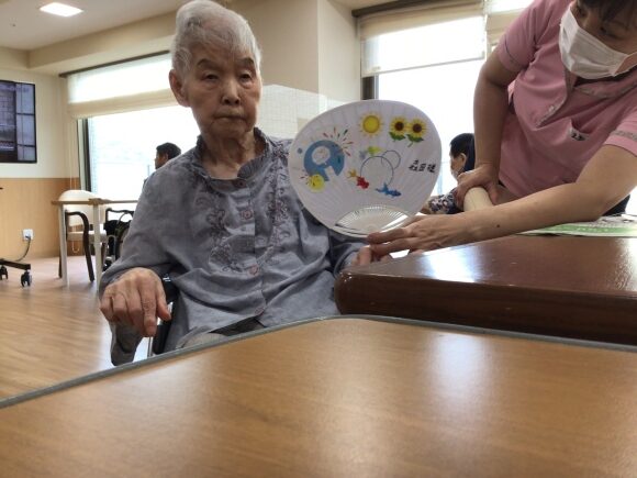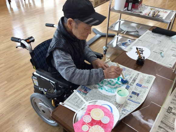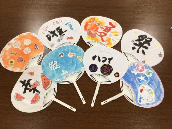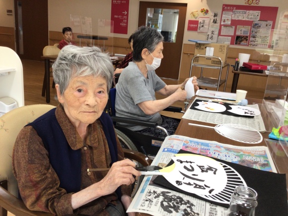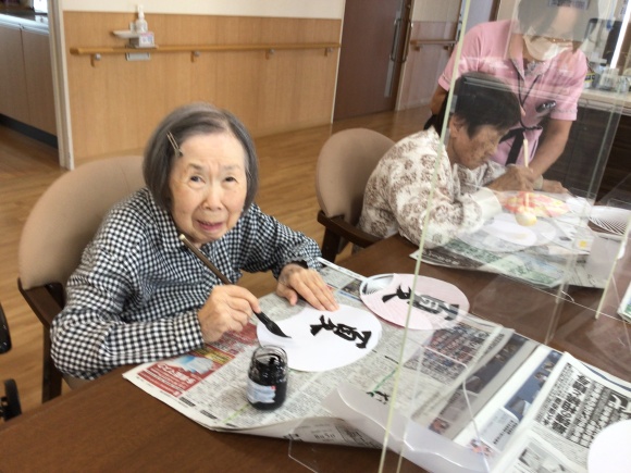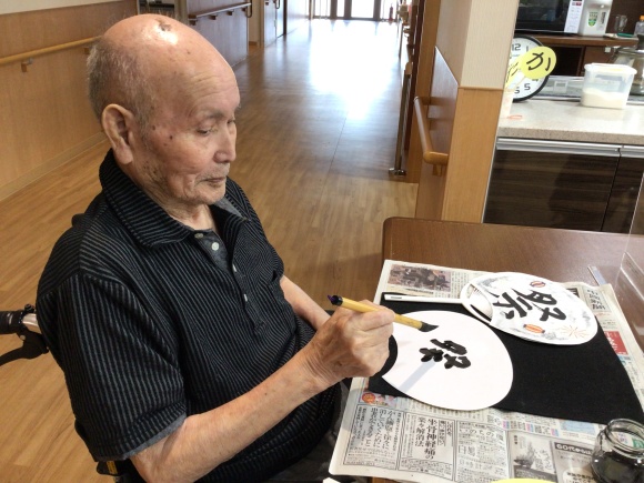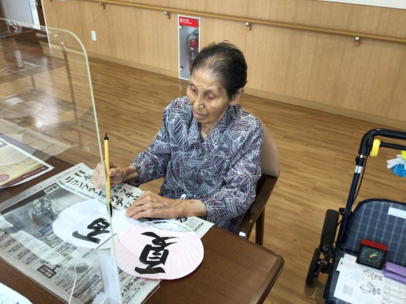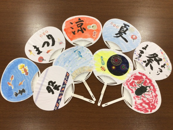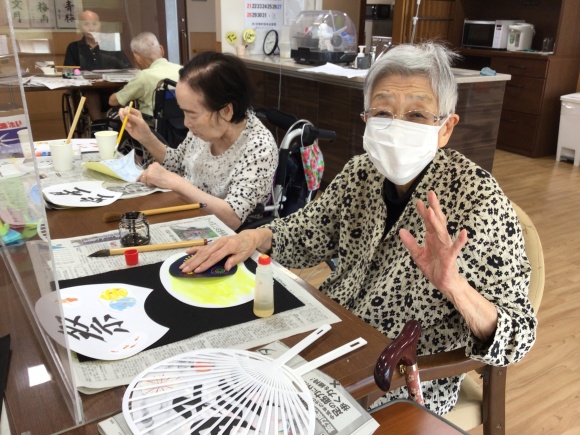 習字で好きな文字を書いて頂き、世界で一つのうちわが完成しました。