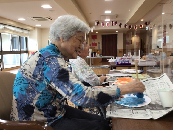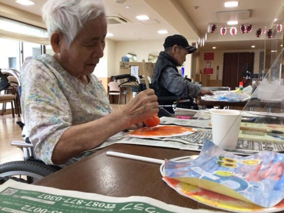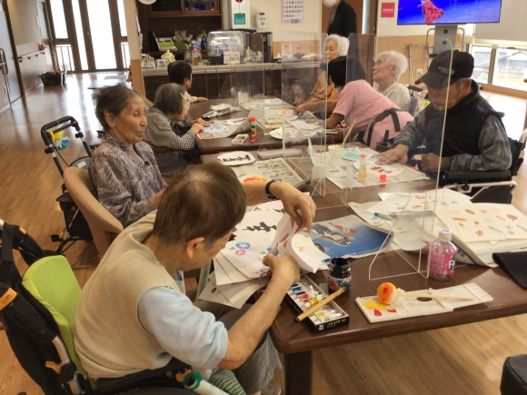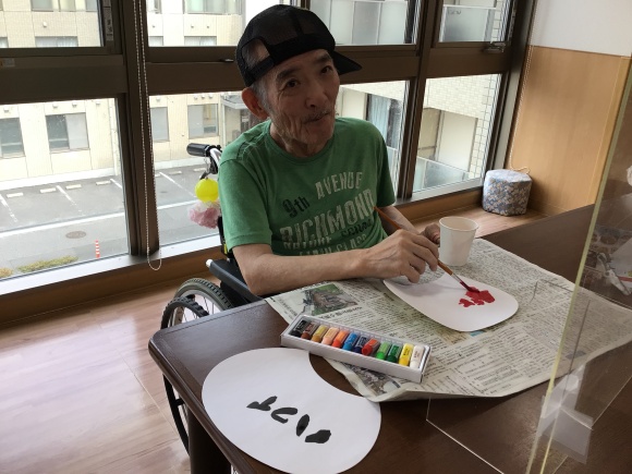 反対の面には絵の具を使用し、色付けをして頂きました。