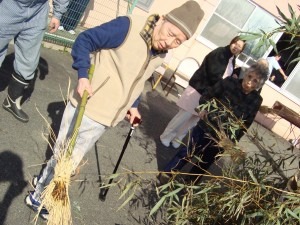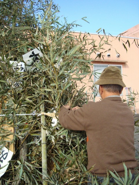良く晴れた月曜日の朝、沙羅の外庭では職員がせっせと竹を組んでいました。